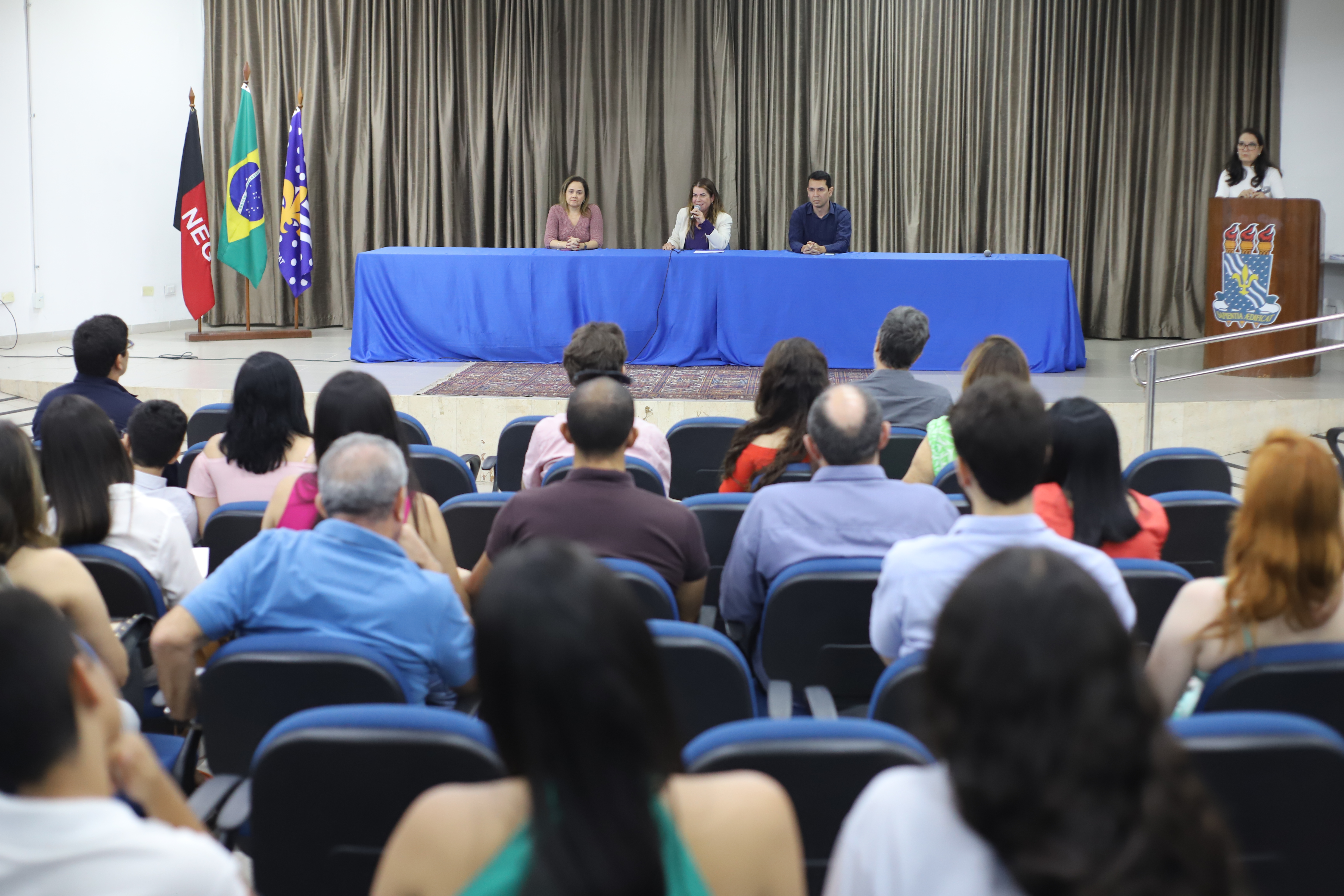 “A gente aqui dá aula, tem que fazer projeto de extensão, tem que fazer pesquisa, tem que estimular esses alunos a gostar de aprender, a se tornarem profissionais de referência. Isso é muito importante e desafiante para nós docentes. E a gente conta com vocês que estão chegando com gás e com brilho, liberem essa energia boa para todos que estão a seu redor e façam com que essa equipe que é a UFPB, cresça cada vez mais, inclusive através de vocês”, disse a Vice-Reitora.